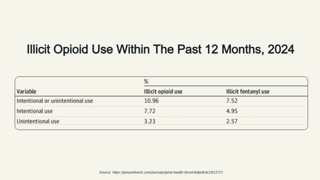 New data provides some useful context to the current opioid epidemic. Of U.S. adults, almost 11% reported nonprescription opioid use within the past 12 months, according to Estimates Of Illicit Opioid Use In The US. This includes 7.5% of the population reporting using illicitly manufactured fentanyl (IMF) in the past 12 months. Illicit opioid use was higher among men, Black respondents, and younger age groups.